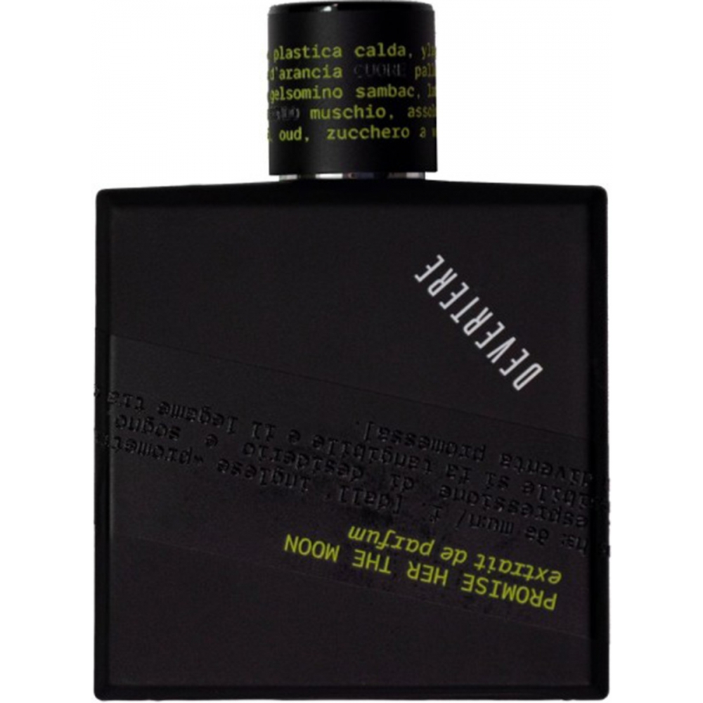 Promise Her the Moon de la Devertere este un parfum experimental și fascinant, ce explorează contrastul dintre note neașteptate și accente senzuale. Deschiderea este jucăușă și avangardistă, cu un mix surprinzător de smalț, galbanum, plastic cald, alături de luminozitatea florală a ylang-ylangului și prospețimea citrică de lămâie și coajă de portocală.